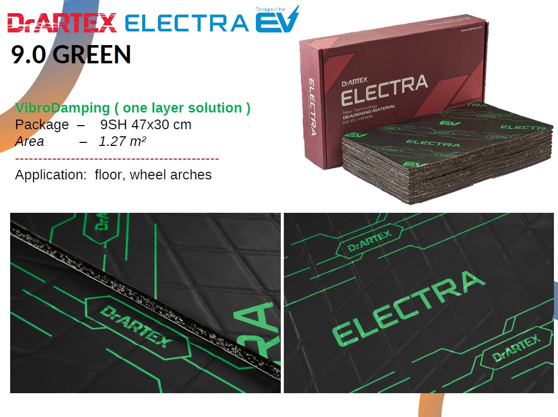 Dr Artex Electra EV 9.0 Green – Insonorizare vibro fono multistrat, premium, ultra-usoara dezvoltata pentru masini electrice